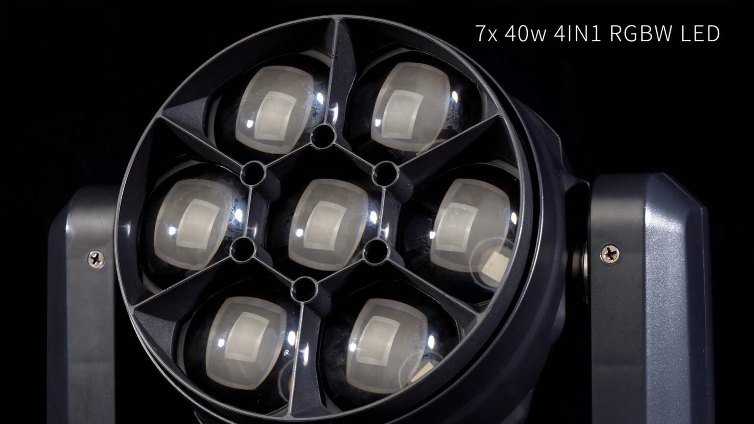 - Источник света: 7×40Вт RGBW 4-в-1 светодиоды
